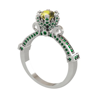 Peridot ve yeşil kuvars 14 ayar beyaz altın yüzük
