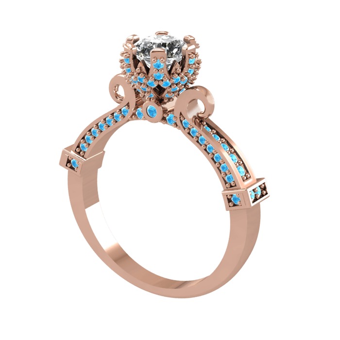 Pırlanta ve akuamarin 925 ayar rose altın kaplama gümüş yüzük (0.92 karat)