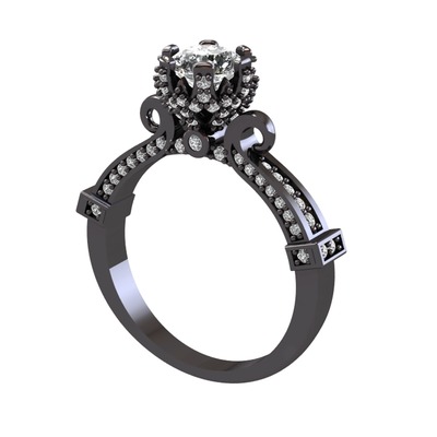 Pırlanta ve beyaz zirkon 925 ayar siyah rodyum kaplama gümüş yüzük (0.92 karat)