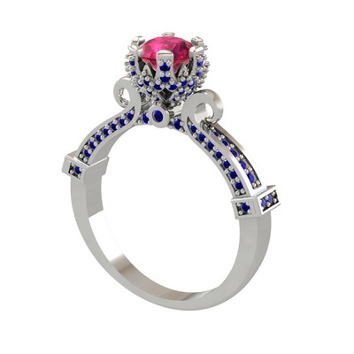 Rodolit garnet ve lab safir 14 ayar beyaz altın yüzük