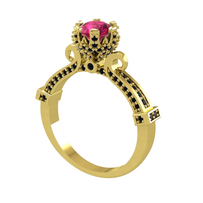 Rodolit garnet ve siyah zirkon 14 ayar altın yüzük
