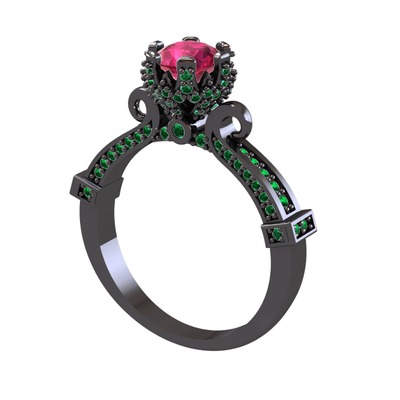 Rodolit garnet ve yeşil kuvars 925 ayar siyah rodyum kaplama gümüş yüzük