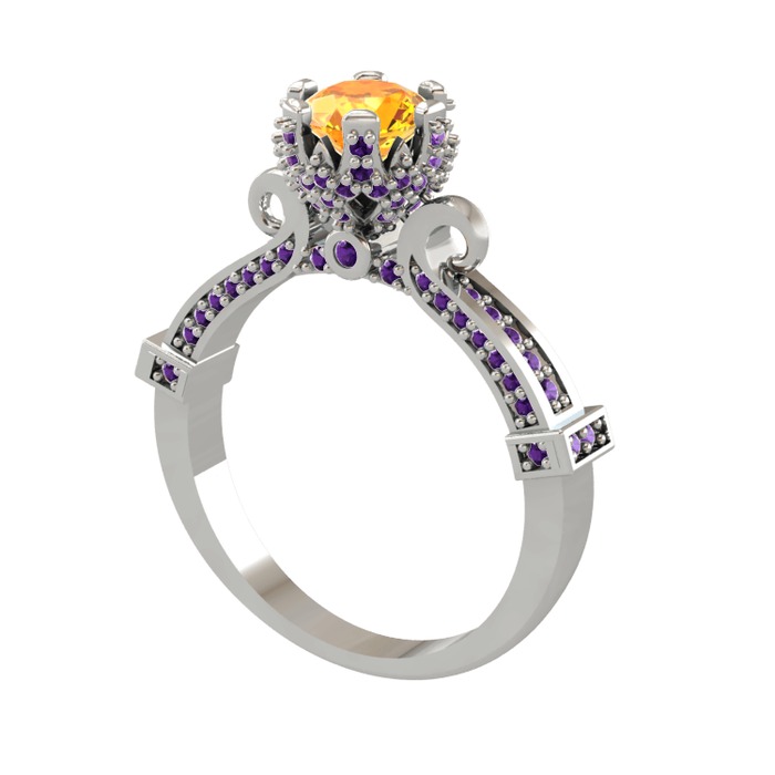 Sitrin ve ametist 14 ayar beyaz altın yüzük
