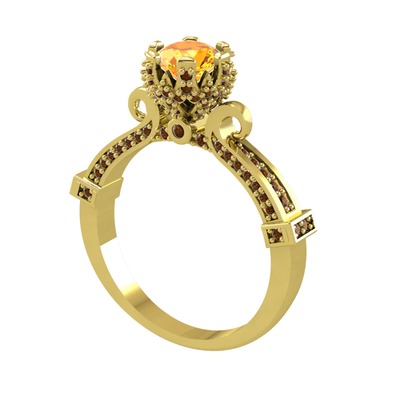 Sitrin ve dumanlı kuvars 14 ayar altın yüzük