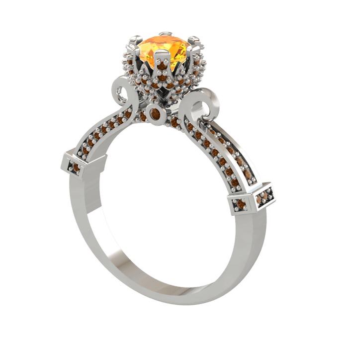 Sitrin ve dumanlı kuvars 8 ayar beyaz altın yüzük