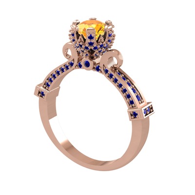 Sitrin ve lab safir 925 ayar rose altın kaplama gümüş yüzük