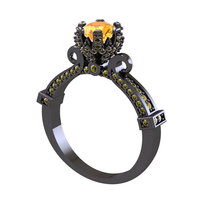 Sitrin ve peridot 925 ayar siyah rodyum kaplama gümüş yüzük
