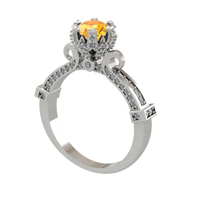 Sitrin ve pırlanta 925 ayar gümüş yüzük (1.034 karat)