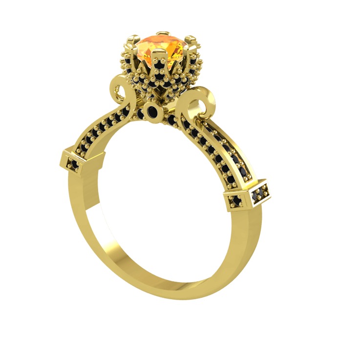 Sitrin ve siyah zirkon 14 ayar altın yüzük