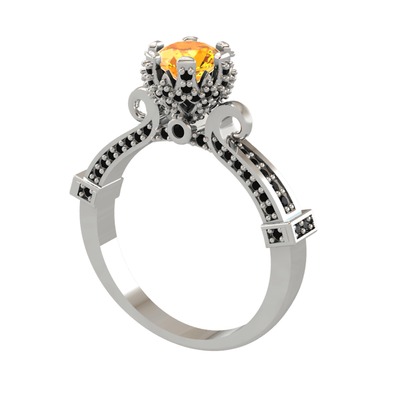 Sitrin ve siyah zirkon 925 ayar gümüş yüzük