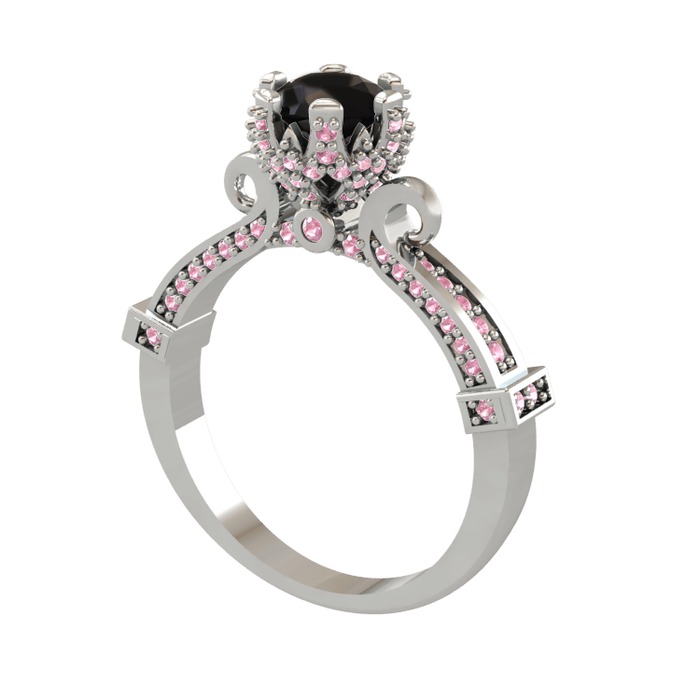 Siyah zirkon ve pembe kuvars 18 ayar beyaz altın yüzük