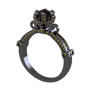 Siyah zirkon ve peridot 925 ayar siyah rodyum kaplama gümüş yüzük