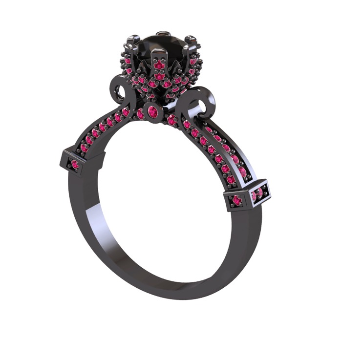 Siyah zirkon ve rodolit garnet 925 ayar siyah rodyum kaplama gümüş yüzük