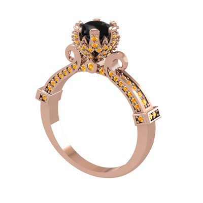 Siyah zirkon ve sitrin 14 ayar rose altın yüzük