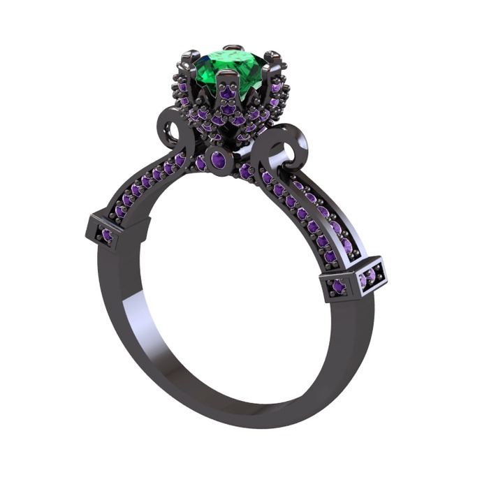 Yeşil kuvars ve ametist 925 ayar siyah rodyum kaplama gümüş yüzük