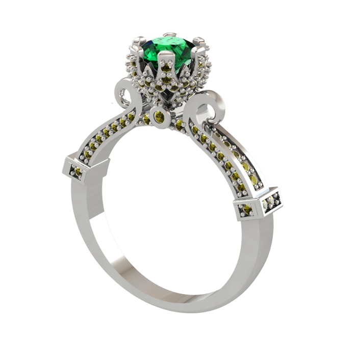 Yeşil kuvars ve peridot 18 ayar beyaz altın yüzük
