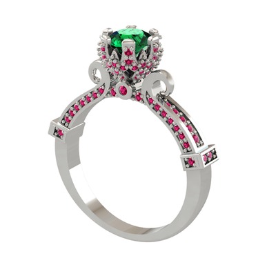 Yeşil kuvars ve rodolit garnet 8 ayar beyaz altın yüzük