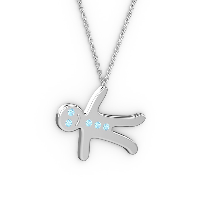 Akuamarin 14 ayar beyaz altın kolye (40 cm beyaz altın rolo zincir)