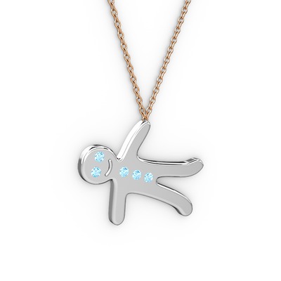 Akuamarin 14 ayar beyaz altın kolye (40 cm rose altın rolo zincir)