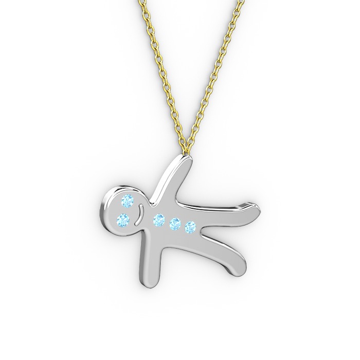 Akuamarin 925 ayar gümüş kolye (40 cm gümüş rolo zincir)