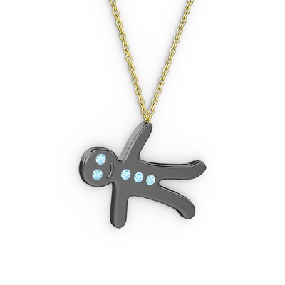 Akuamarin 925 ayar siyah rodyum kaplama gümüş kolye (40 cm gümüş rolo zincir)