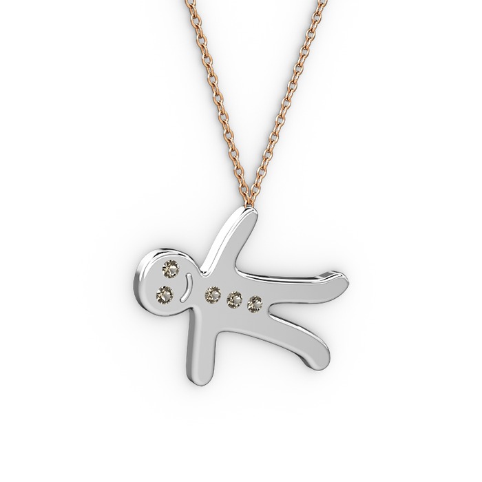 Dumanlı kuvars 8 ayar beyaz altın kolye (40 cm rose altın rolo zincir)