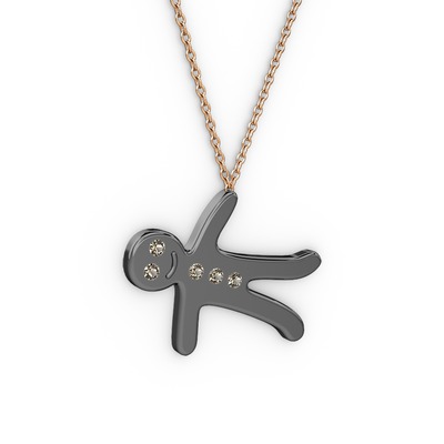 Dumanlı kuvars 925 ayar siyah rodyum kaplama gümüş kolye (40 cm rose altın rolo zincir)