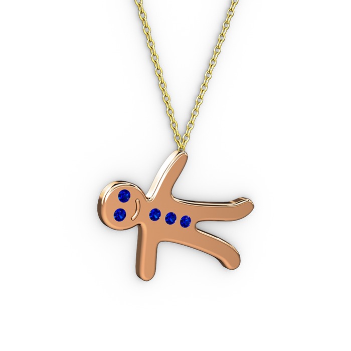Lab safir 14 ayar rose altın kolye (40 cm altın rolo zincir)