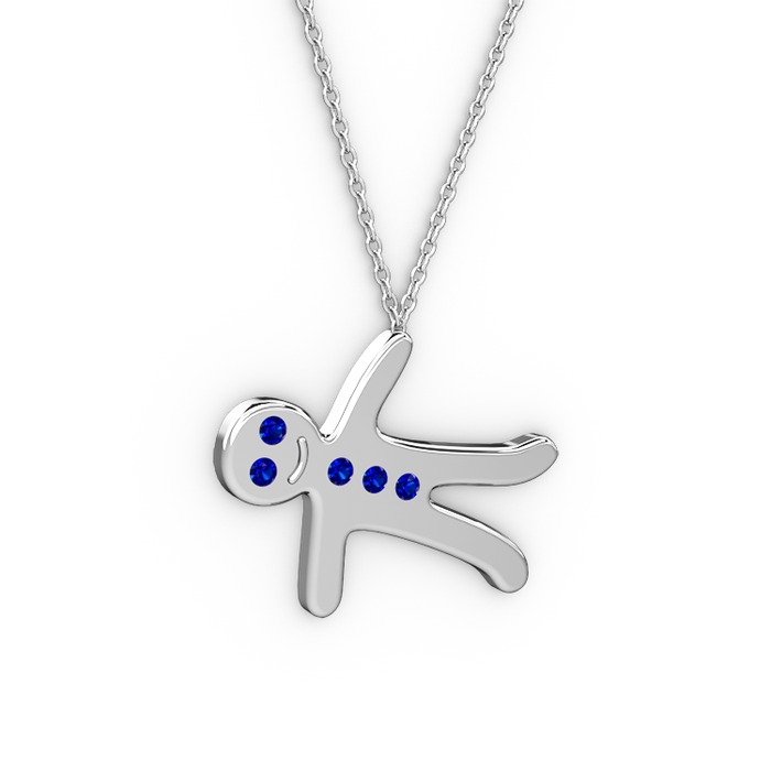 Lab safir 18 ayar beyaz altın kolye (40 cm gümüş rolo zincir)