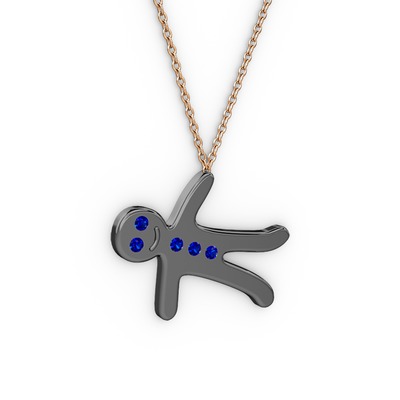 Lab safir 925 ayar siyah rodyum kaplama gümüş kolye (40 cm rose altın rolo zincir)