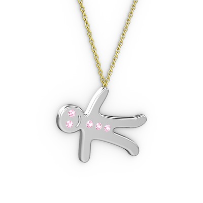 Pembe kuvars 8 ayar beyaz altın kolye (40 cm gümüş rolo zincir)