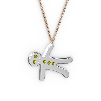 Peridot 18 ayar beyaz altın kolye (40 cm rose altın rolo zincir)