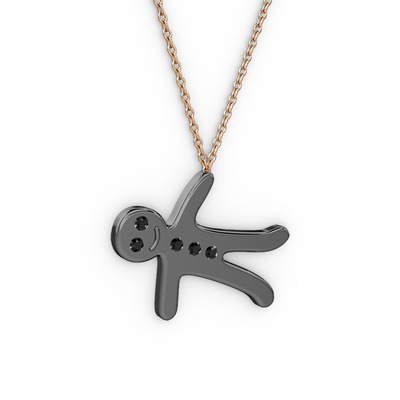 Siyah zirkon 925 ayar siyah rodyum kaplama gümüş kolye (40 cm rose altın rolo zincir)