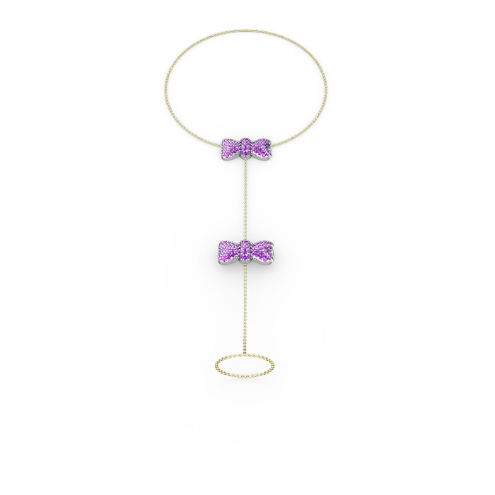 Ametist 925 ayar gümüş bilezik (40 cm altın rolo zincir)