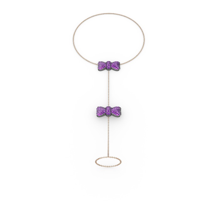 Ametist 925 ayar siyah rodyum kaplama gümüş bilezik (40 cm gümüş rolo zincir)