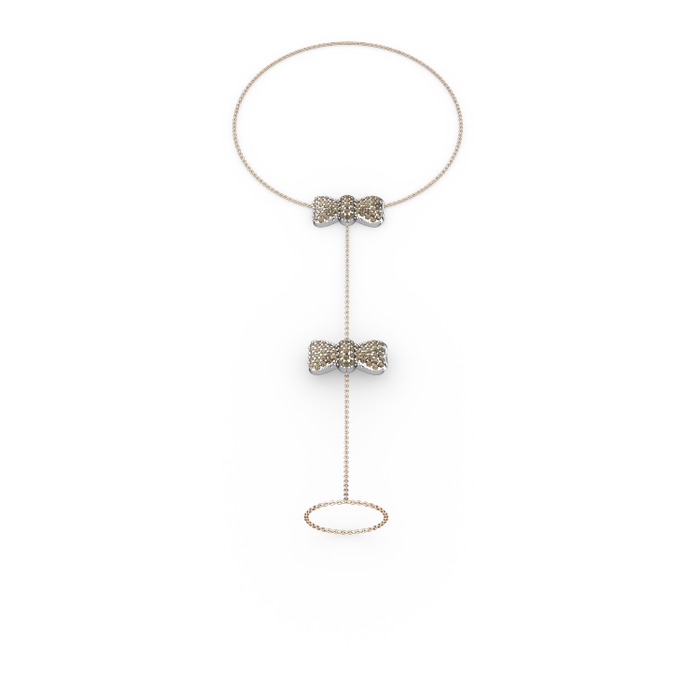 Dumanlı kuvars 8 ayar beyaz altın bilezik (40 cm rose altın rolo zincir)