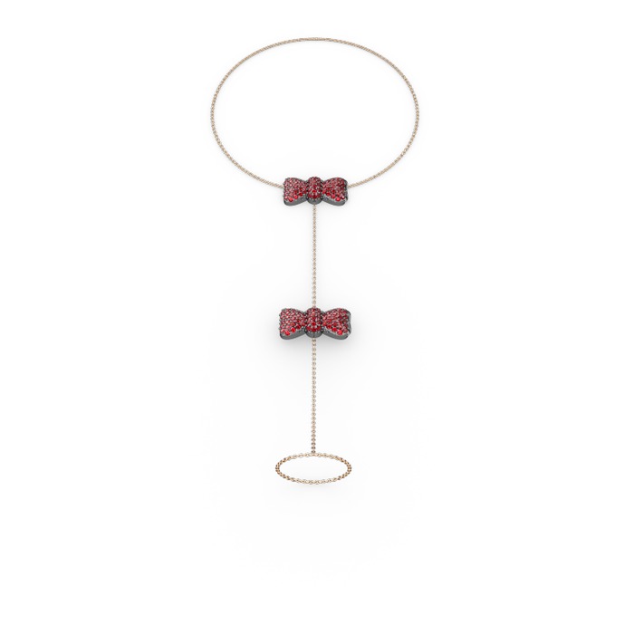 Garnet 925 ayar siyah rodyum kaplama gümüş bilezik (40 cm rose altın rolo zincir)