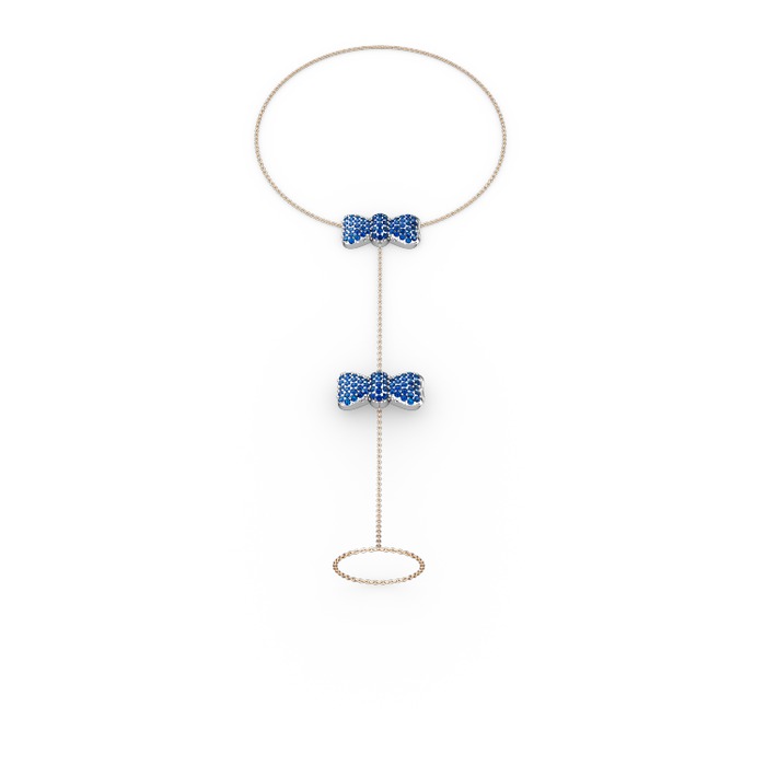 Lab safir 18 ayar beyaz altın bilezik (40 cm rose altın rolo zincir)