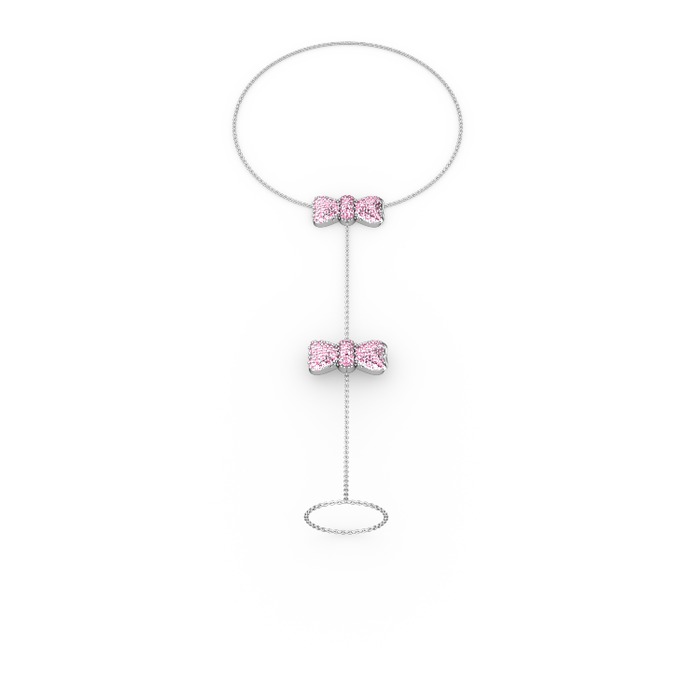 Pembe kuvars 14 ayar beyaz altın bilezik (40 cm beyaz altın rolo zincir)