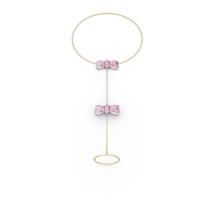 Pembe kuvars 18 ayar beyaz altın bilezik (40 cm altın rolo zincir)