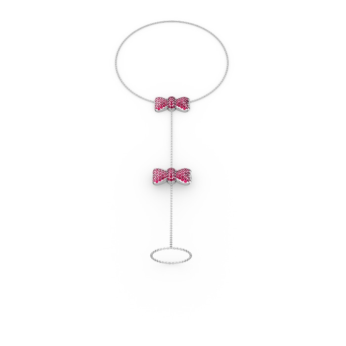 Rodolit garnet 14 ayar beyaz altın bilezik (40 cm beyaz altın rolo zincir)