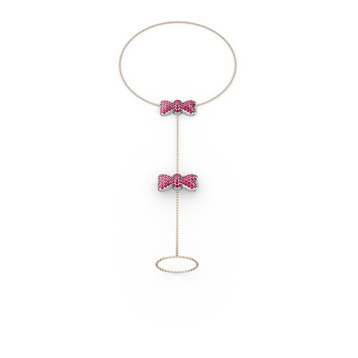 Rodolit garnet 8 ayar beyaz altın bilezik (40 cm gümüş rolo zincir)
