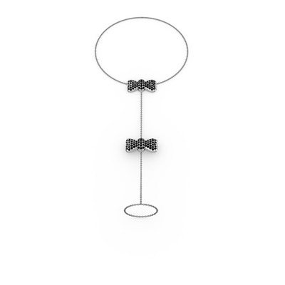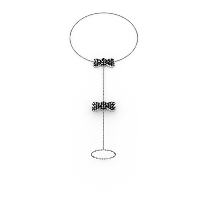Siyah zirkon 14 ayar beyaz altın bilezik (40 cm gümüş rolo zincir)