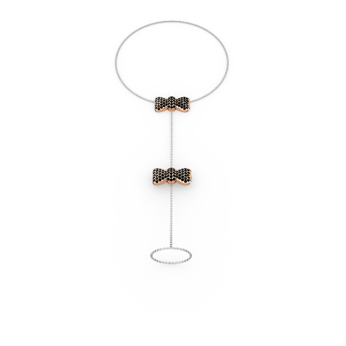 Siyah zirkon 14 ayar rose altın bilezik (40 cm beyaz altın rolo zincir)