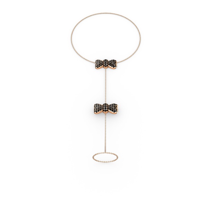 Siyah zirkon 14 ayar rose altın bilezik (40 cm rose altın rolo zincir)