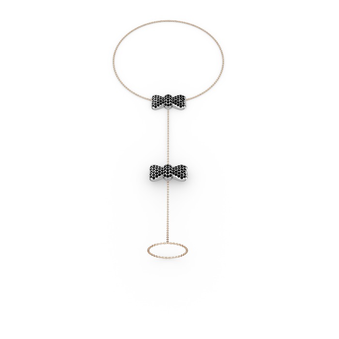 Siyah zirkon 18 ayar beyaz altın bilezik (40 cm rose altın rolo zincir)