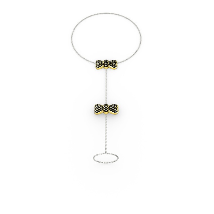 Siyah zirkon 8 ayar altın bilezik (40 cm beyaz altın rolo zincir)