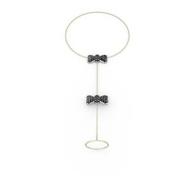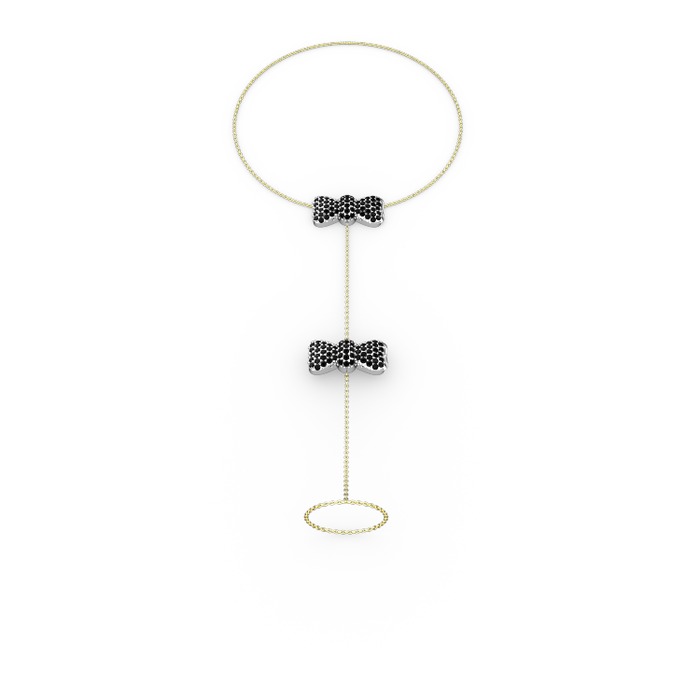 Siyah zirkon 925 ayar gümüş bilezik (40 cm altın rolo zincir)