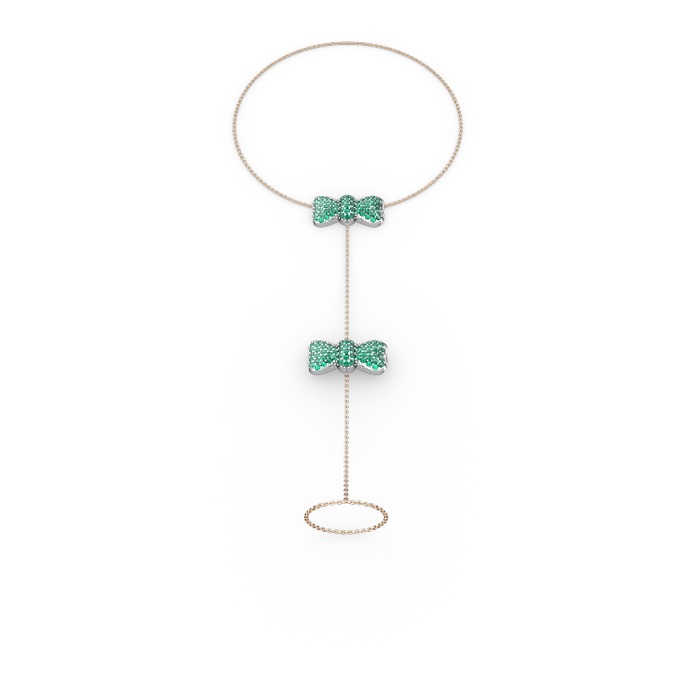 Yeşil kuvars 18 ayar beyaz altın bilezik (40 cm rose altın rolo zincir)