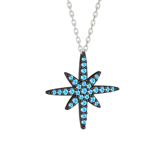 Akuamarin 925 ayar siyah rodyum kaplama gümüş kolye (40 cm beyaz altın rolo zincir)